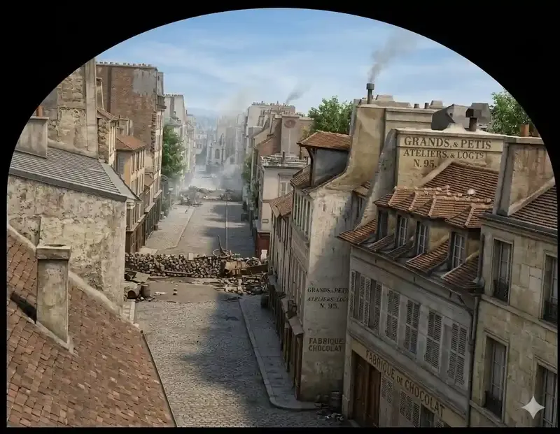 1848 Paris ayaklanmaları sırasında kimliği belirsiz bir fotoğrafçı, sokaklardaki barikatları ve çatışma hazırlıklarını görüntüledi. Bu kare, bir toplumsal olayın sıcaklığını kitlelere ulaştıran tarihteki ilk görsel haber belgesi niteliğini taşıdı.